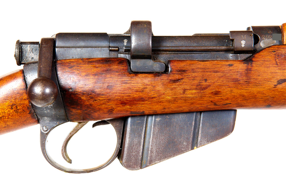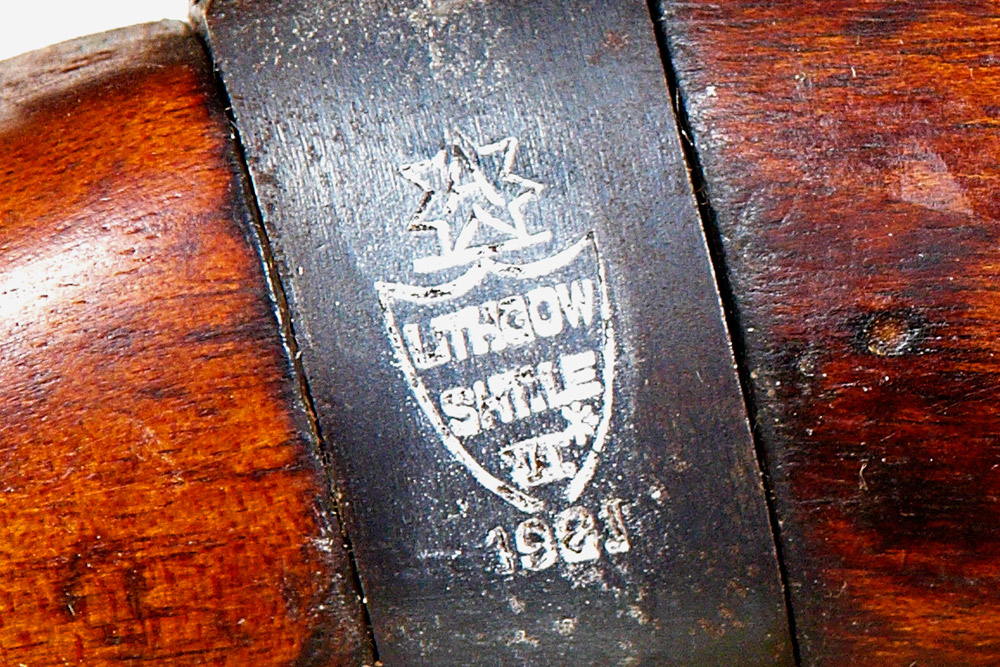 Rare year. Obviously been to war. Refitted during the 1940s and so marked. All original attractive blond Coachwood furniture. All matching components except the rear hand guard which has been replaced.
