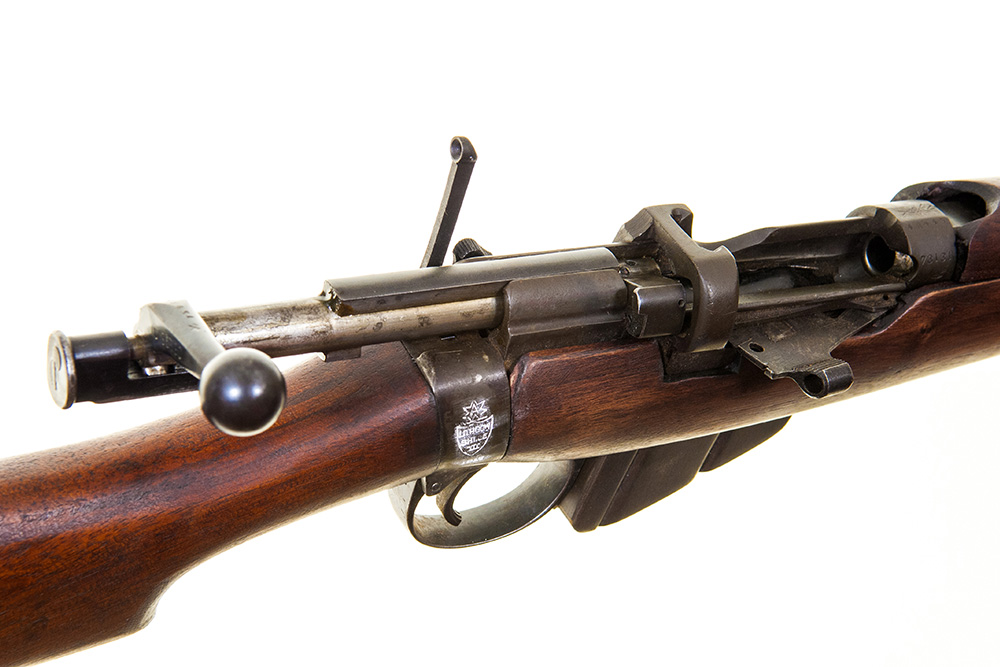 Full MkIII specification, volley sights, windage rear sight, magazine cut off, etc. This rifle was later fitted with a WW2 era Lithgow heavy target barrel, which externally is indistinguishable from a standard MkIII. The bore is excellent and the woodwork free of major dings. The butt is heavily cartouched in the Australian manner. A very fine classic WW1 rifle, excellent for military rifle competitions.